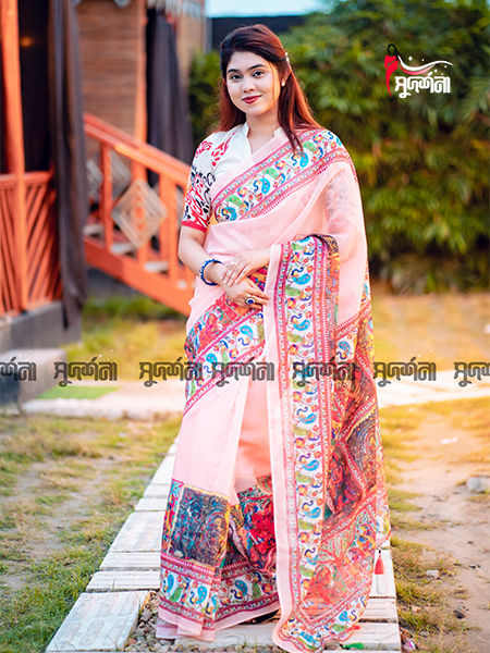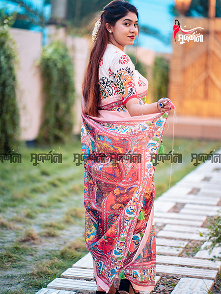 চান্দুরি ডিজিটাল প্রিন্ট শাড়ি – আধুনিক ডিজাইন আর ঐতিহ্যের অসাধারণ মেলবন্ধন। এই শাড়িতে ব্যবহৃত হয়েছে প্রিমিয়াম মানের ফেব্রিক, যা পরতে আরামদায়ক এবং দেখতে আভিজাত্যে ভরপুর। ডিজিটাল প্রিন্ট প্রযুক্তির মাধ্যমে শাড়ির প্রতিটি অংশে ফুটিয়ে তোলা হয়েছে দৃষ্টিনন্দন নকশা ও রঙের সমাহার, যা দীর্ঘদিন একই রঙের উজ্জ্বলতা বজায় রাখবে।